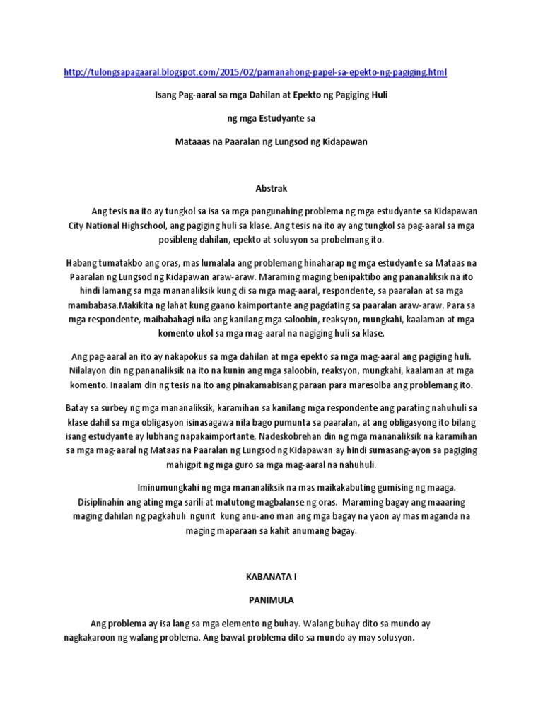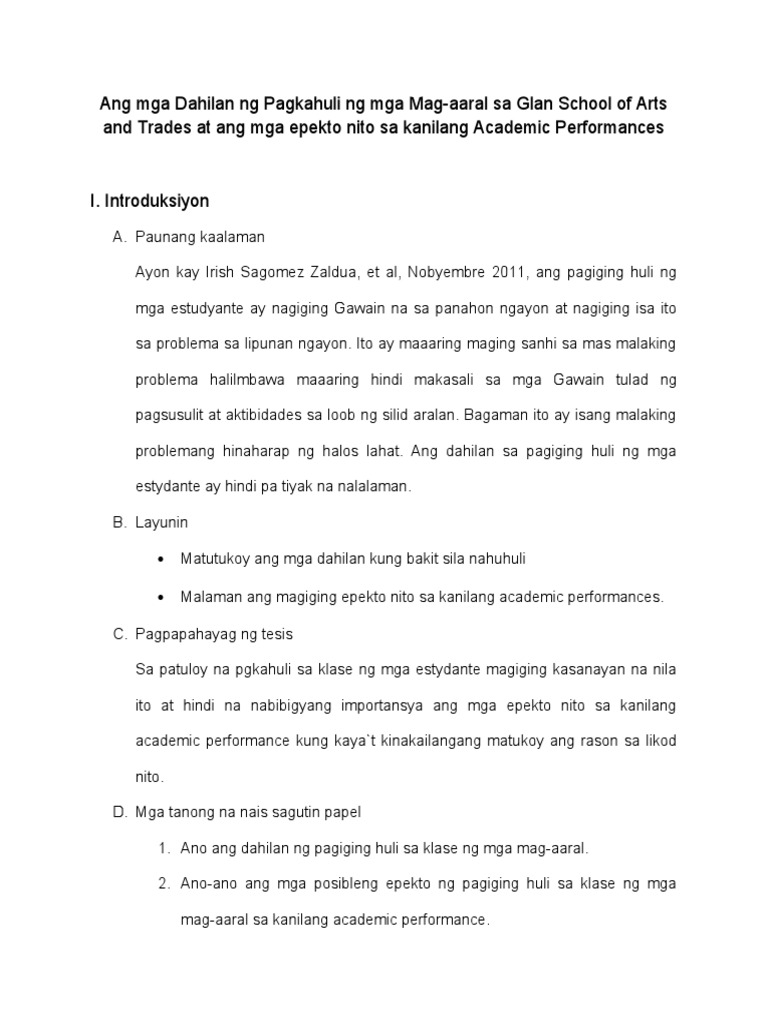 Doc Dahilan At Epekto Ng Pagiging Huling Ng Mga Estudyante Sa Paaralan Troy Mangaoang Academia Edu